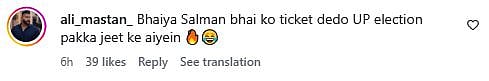Another Instagram user wrote, "जब दो मजबूत शख्सियतें मिलती हैं, तो इतिहास बनता है। Hero meets a Hero (When two strong personalities meet, history is created. Hero meets a Hero) (sic)." Meanwhile, a netizen wants Salman to join politics, "Bhaiya Salman bhai ko ticket dedo UP election pakka jeet ke aiyein (sic)." Check out the comments below...