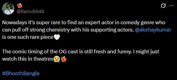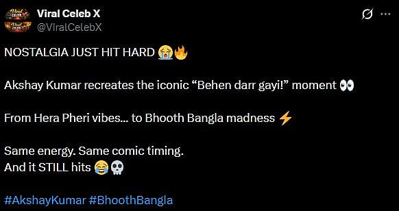 One more netizen tweeted, "NOSTALGIA JUST HIT HARD 😭🔥 Akshay Kumar recreates the iconic “Behen darr gayi!” moment 👀 From Hera Pheri vibes… to Bhooth Bangla madness ⚡ Same energy. Same comic timing. (sic)." Check out the tweets below...