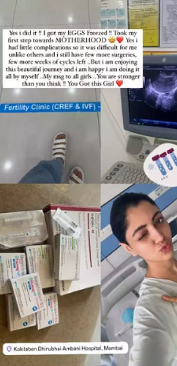 Sharing a powerful message on her Instagram story, Akanksha dropped a photo from the hospital and wrote, “Yes I did it!! I got my EGGS freezed!! Took my first step towards MOTHERHOOD. Yes I had little complications so it was difficult for me unlike other and I still have few more surgeries, few more weeks of cycle left…But I’m enjoying this beautiful journey and I am happy I am doing it all by myself.” Adding to this she also dropped a message to all the girls as she wrote, “My msg to all girls. You are stronger than you think!! You Got this Girl.”