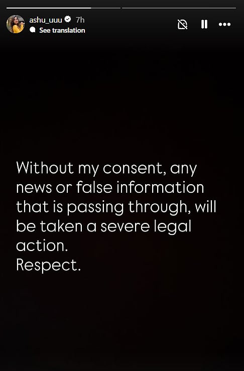 Responding to the controversy, Ashu denied the allegations. Taking to social media, she stated that false and misleading information is being circulated without her consent and warned of legal action against individuals and platforms spreading unverified reports.