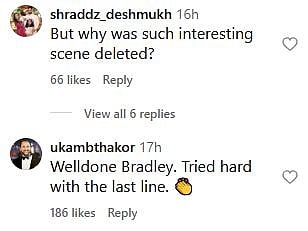 A lot of netizens are wondering why this scene was deleted from the film. A netizen commented, "But why was such interesting scene deleted? (sic)" Another Instagram user wrote, "Well done Bradley. Tried hard with the last line (sic)."