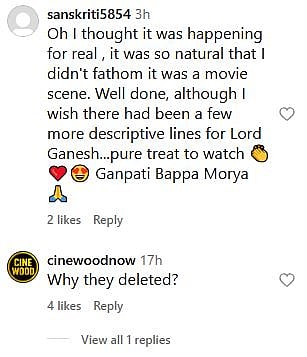 One more netizen commented, "Oh I thought it was happening for real , it was so natural that I didn't fathom it was a movie scene. Well done, although I wish there had been a few more descriptive lines for Lord Ganesh...pure treat to watch 👏❤️😍 Ganpati Bappa Morya (sic)." Check out the comments below...