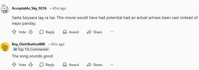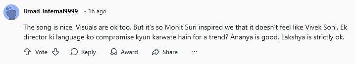 Another netizen commented, "Sasta Saiyaara lag ra hai. This movie would have had potential had an actual actress been cast instead of nepo panday (sic)." One more Reddit user wrote, "Not Ananya giving better expression than him, nevertheless song gonna be hit on reels (sic)." Check out the comments below...