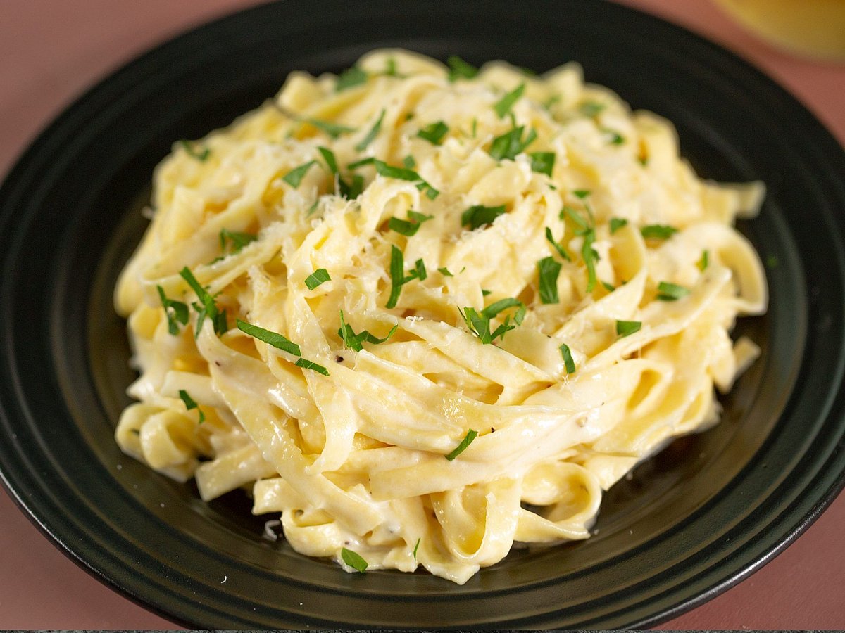 My favourite food: Pasta in a classic Alfredo sauce with garlic, onion, broccoli, and chicken.