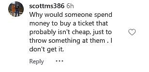Another Instagram user wrote, "I hope that person got arrested (sic)." One more netizen commented, "Why would someone spend money to buy a ticket that probably isn't cheap, just to throw something at them . I don't get it (sic)." Check out the comments below...
