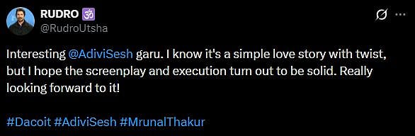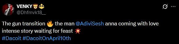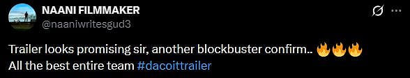 Another X user wrote, "Trailer looks promising sir, another blockbuster confirm.. 🔥🔥🔥 All the best entire team #dacoittrailer (sic)."