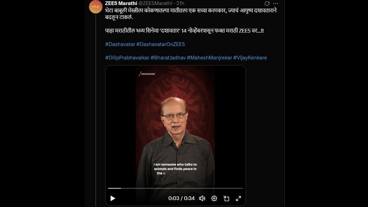 Dilip Prabhavalkar's Dashavtar is set to premiere on ZEE5, starting from November 14, 2025. The streaming platform shared the announcement clip on X and wrote, "Meet Babuli Mestre, a true artist from the soil of Konkan, whose life was completely transformed by Dashavatar. Watch the grand Marathi film 'Dashavatar' from November 14 exclusively on Marathi ZEE5...!!"