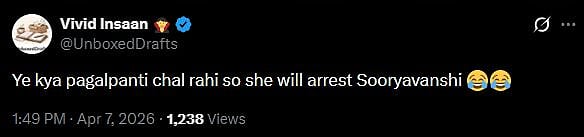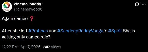 Reacting to the tweet, a netizen wrote, "Ye kya pagalpanti chal rahi so she will arrest Sooryavanshi (sic)." Another X user wrote, "Again cameo ❓ After she left #Prabhas and #SandeepReddyVanga's #Spirit she is getting only cameo role? (sic)."