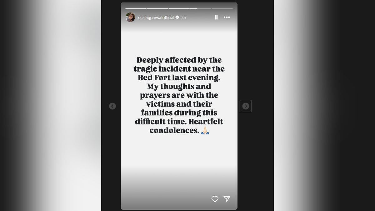 Taking to her Instagram stories section to pen her thoughts on the incident, she wrote, "Deeply affected by the tragic incident near the Red Fort last evening. My thoughts and prayers are with the victims and their families during this difficult time. Heartfelt condolences."