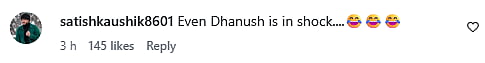 One more netizen commented, "Even Dhanush is in shock.... (sic)." Check out the comments below...