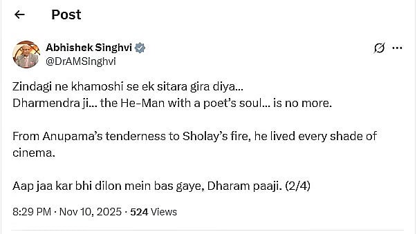 A few hours ago, Congress leader Abhishek Manu Singhvi shared a social media post claiming that Dharmendra had passed away at the age of 89 in a Mumbai hospital. However, he later deleted the post.