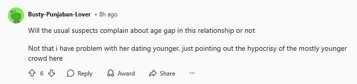 Another netizen commented, "Why does it look like they have studio lights on them? Is this for some kind of shoot/promotion? (sic)." One more Reddit user wrote, "Will the usual suspects complain about age gap in this relationship or not Not that i have problem with her dating younger, just pointing out the hypocrisy of the mostly younger crowd here (sic)." Check out the comments below...