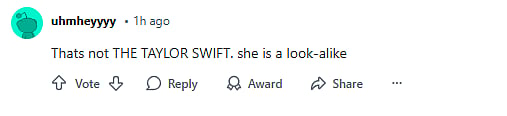 A user commented, "That's Ashley. That's just Ashley." Another comment read, "It’s not Taylor Swift for sure." A third user wrote, "That's ashley but why would they do this."