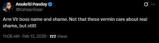 Reacting to the DM screenshot that Vir shared, a netizen tweeted, "Arre Vir boss name and shame. Not that these vermin care about real shame, but still! (sic)."