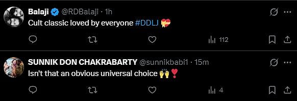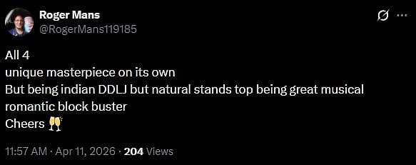 One more netizen tweeted, "All 4 unique masterpiece on its own. But being Indian DDLJ but natural stands top being great musical romantic blockbuster Cheers (sic)."
