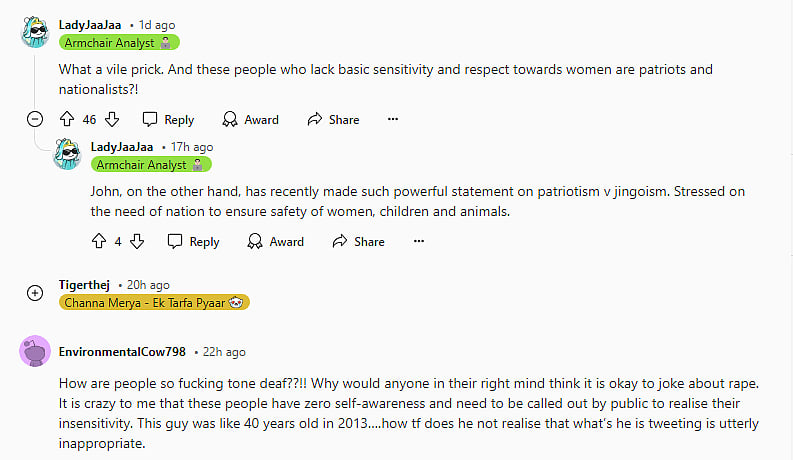 While Agnihotri has now deleted the tweet, screenshots of it have resurfaced on social media, with people calling out the filmmaker for the disgusting comment. "What a vile prick. And these people who lack basic sensitivity and respect towards women are patriots and nationalists?!" a netizen commented, while another wrote, "Such insensitivity! Will not understand until happens to them! Disgusted!"