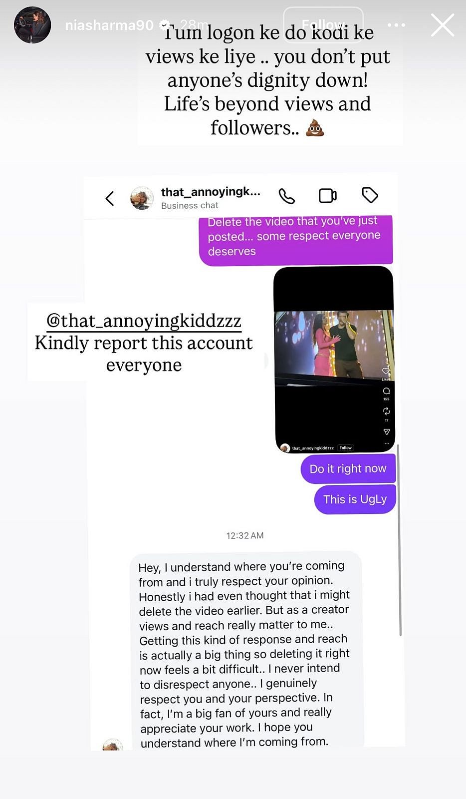 After this, an influencer named @that_annoyingkiddzzz shared a video on her Instagram showing Hamid in what was described as an inappropriate context and mocked him, which did not go down well with Nia. She urged the influencer to delete the video, stating it was not right and that it was hurting Hamid’s dignity, as she came out in his defence.