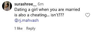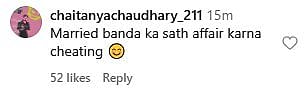 One more netizen commented, "Aur dusre logoka husband churana vo bi cheating (sic)." Check out the comments below...