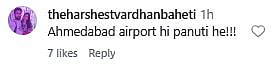 A netizen commented on the Instagram post, "Ahmedabad airport hi panuti he!!! (sic)." Another Instagram user wrote, "Dharti pe atyachar badh jata tou asman me problem ane lgti hai (sic)."
