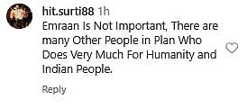 One more netizen commented, "Emraan Is Not Important, There are many Other People in Plan Who Does Very Much For Humanity and Indian People (sic)." Check out the comments below...