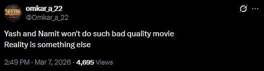 Well, netizens understood that it is not a real picture, and it is AI-generated. A netizen tweeted, "Yash and Namit won't do such bad quality movie Reality is something else (sic)."