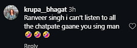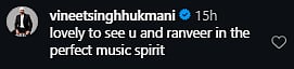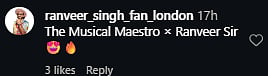 Sharing the video on his social media account, Mahadevan wrote, "I love you, Ranveer!!!", to which Ranveer responded in the comments section of the same post with an "ILYSM", which stands for 'I love you so much'.