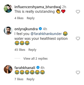 As soon as she dropped the video on her social media, netizens shared their reaction. What caught the attention was Shilpa Shetty’s husband, Raj Kundra's comment. As he agreed with Farah and wrote, “I feel you @farahkhankunder water was your healthiest option.”