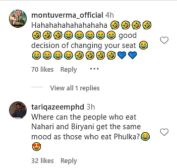 "Where can the people who eat Nahari and Biryani get the same mood as those who eat Phulka?", the comment reads.