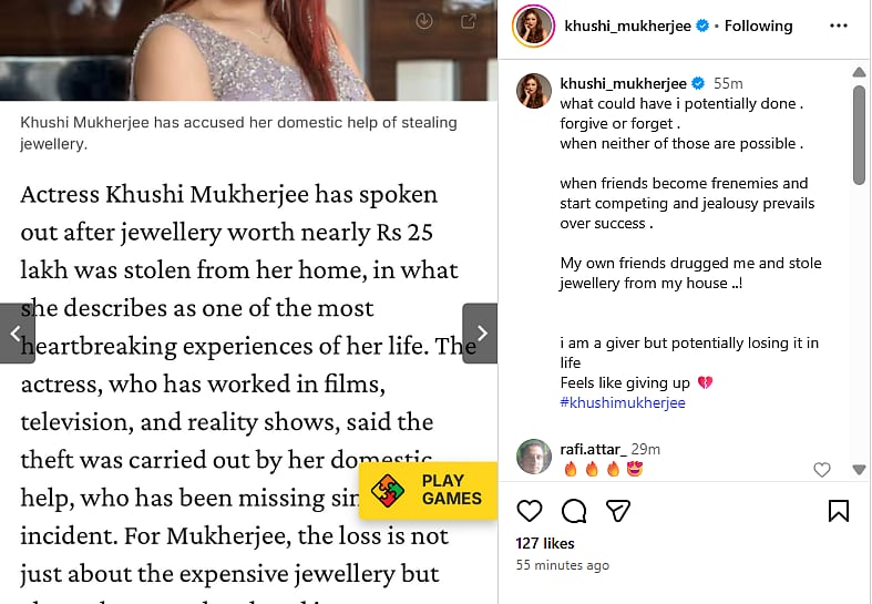 Taking to her Instagram account on Sunday (November 23), Khushi shared a screenshot of a news article from August 2025 which mentioned that her househelp was behind the robbery.