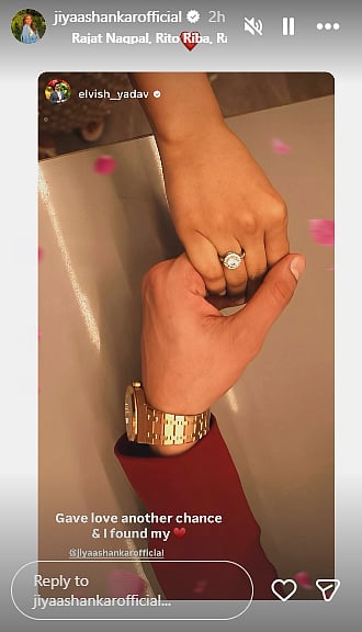 YouTuber and reality star Elvish Yadav shocked one and all with his Instagram story on Thursday. He shared a picture in which he is holding the hand of a girl, who is wearing a diamond ring on the finger. He has written a romantic caption and tagged actress Jiya Shankar in it. Now, this has made their fans wonder whether Jiya and Elvish are engaged.