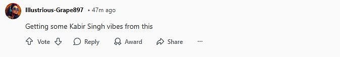 Another Reddit user wrote, "Kabir Singh and preeti low budget version (sic)." One more netizen commented, "Getting some Kabir Singh vibes from this (sic)." Check out the comments below...