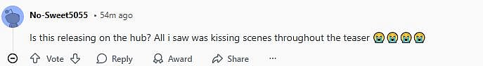 As soon as the teaser was released, it became the topic of discussion on Reddit. A netizen commented, "Is this releasing on the hub? All i saw was kissing scenes throughout the teaser (sic)."
