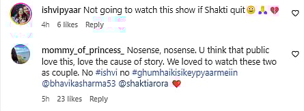 A third user commented, "Honestly this is a shame ! I did read some rumors saying that Shakti will leave the show on the 18th of June, and this trailer is like preparing us for this and it is such a shame, why do some of you keep begging them for shakti to stay, don’t beg them, they need to BEG YOU for yours views ! The show will drop after shakti exists the show lol, literally everyone is watching for him and bhavika. I don’t know who will still watch the story after this. But seriously whoever is writing the scripts needs a slap, hopefully it will help them wake up."