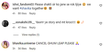 Soon after the new promo was shared on social media, netizens expressed disappointment. Several even asked the makers to cancel the upcoming leap. A user wrote, "What's the point of this promo when male lead is going to exit after this." While another added, "We want a romantic story for them, we want to see them love each other, we want to see them under one roof You have Shakti and Bhavika and there is no one else."