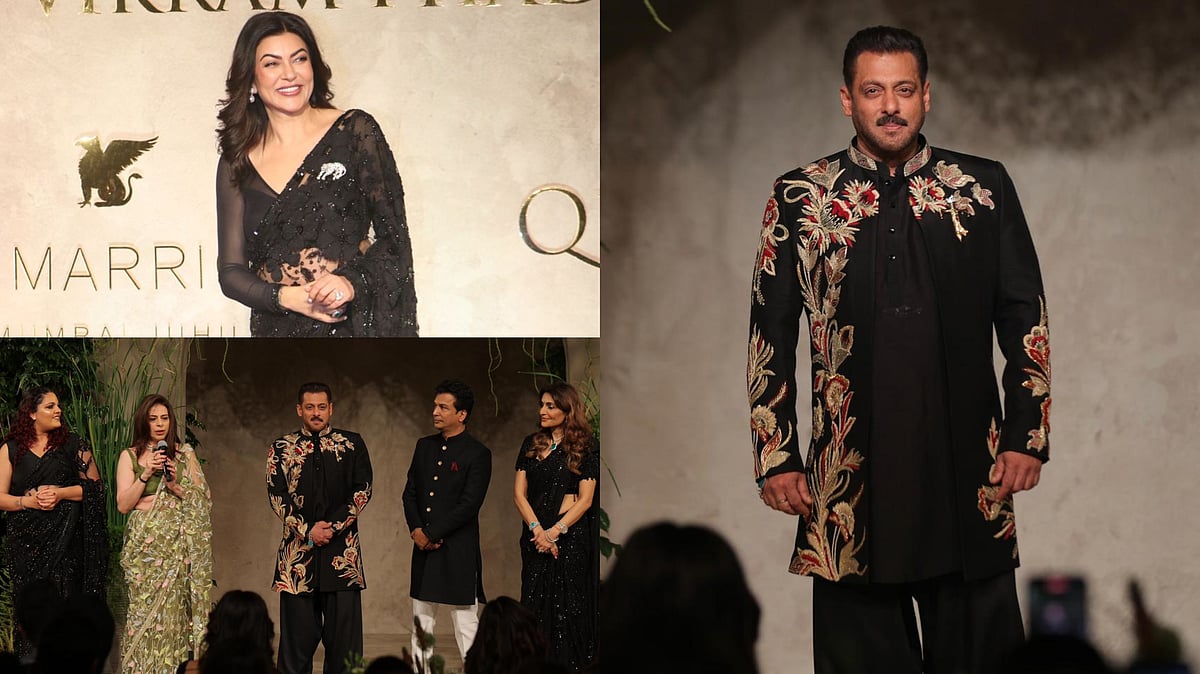 "When we completed that film, I had made a friend, who I have been so proud of my entire life. Because he's been a hustler, ladies and gentlemen. A man who's had nothing given to him on a platter. The only other guy I know other than myself who's never really had a PR. We've always believed that we find the right people and they will come to help us when the time comes. And all of you sitting in this room must applaud yourself because he considers you to be those people. Thank you for making a difference to the life of a man I considered my friend and somebody who has deeply moved me on many occasions, stories of which are too personal to tell and to share here. But Vikram, wherever you're hiding my love tonight, please don't hide. Tonight you show up and let this room and this world applaud your journey of 35 long years," said Sushmita Sen, as she opened the fashion show for the night.