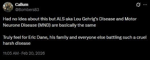 Fans are very sad to hear to about Eric's demise. A fan tweeted, "Had no idea about this but ALS aka Lou Gehrig’s Disease and Motor Neurone Disease (MND) are basically the same Truly feel for Eric Dane, his family and everyone else battling such a cruel harsh disease (sic)."