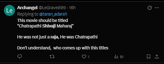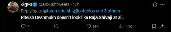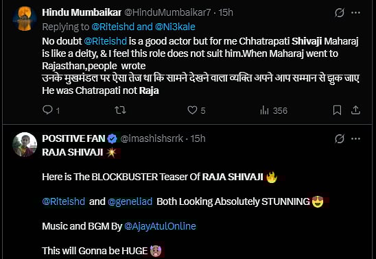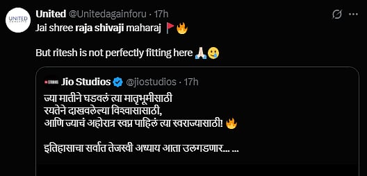 "As someone from Maharashtra, 'Chhatrapati' is not just a title — it represents sacrifice, leadership, and identity. Respectfully asking, could using 'Raja Shivaji' influence global audiences to miss that deeper significance of CHHATRAPATI ? @Riteishd sir?" asked a user on X.
