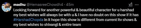 Well, even before the official announcement, fans of both the actors are super exicted about the show. A fan posted on X, "omggggg Just came online and this is the best news of this month." Another fan wrote, "Looking forward for another powerful & beautiful character for u harshad my best wishes will always be with u & I have no doubt on this show if it has #HarshadChopda in it hope this show is different from current itv shows & my best wishes to shivangi & entire team." One more fan posted, "Now this is something I can definitely wait for. Both are Brilliant Actors and I a Fresh Pairing."
