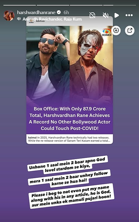 Reacting to it, Harshvardhan wrote, "Unhone 1 saal mein 2 baar apne God level stardom se kiya, mera 1 saal mein 2 baar unhey follow karne se hua hai! Please I beg to not even put my name along with his in any article, he is God, aur mein unka ek mamuli pujari hoon."