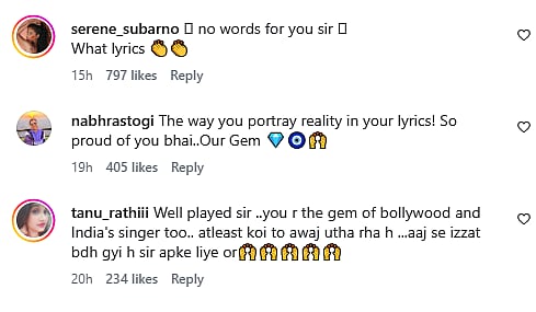 One more netizen commented, "Well played sir ..you r the gem of bollywood and India's singer too.. atleast koi to awaj utha rha h ...aaj se izzat bdh gyi h sir apke liye or (sic)." Check out the comments below...