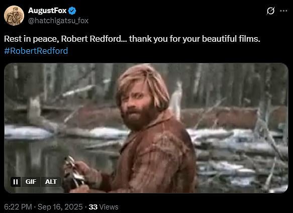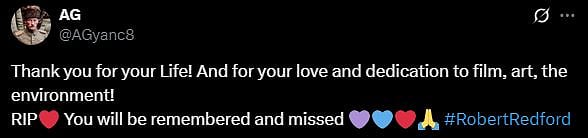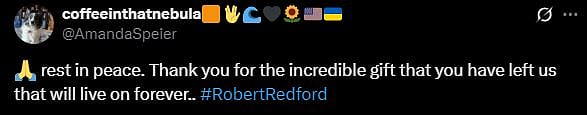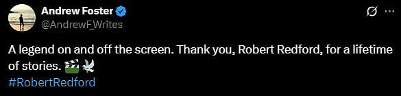 One more netizen tweeted, "Rest in peace. Thank you for the incredible gift that you have left us that will live on forever.. #RobertRedford (sic)." Check out the tweets below...