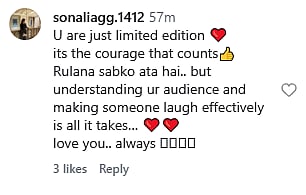 Reacting to Jamie's post, a fan commented, "U are just limited edition ❤️ its the courage that counts👍Rulana sabko ata hai.. but understanding ur audience and making someone laugh effectively is all it takes… ❤️❤️ love you.. always (sic)."