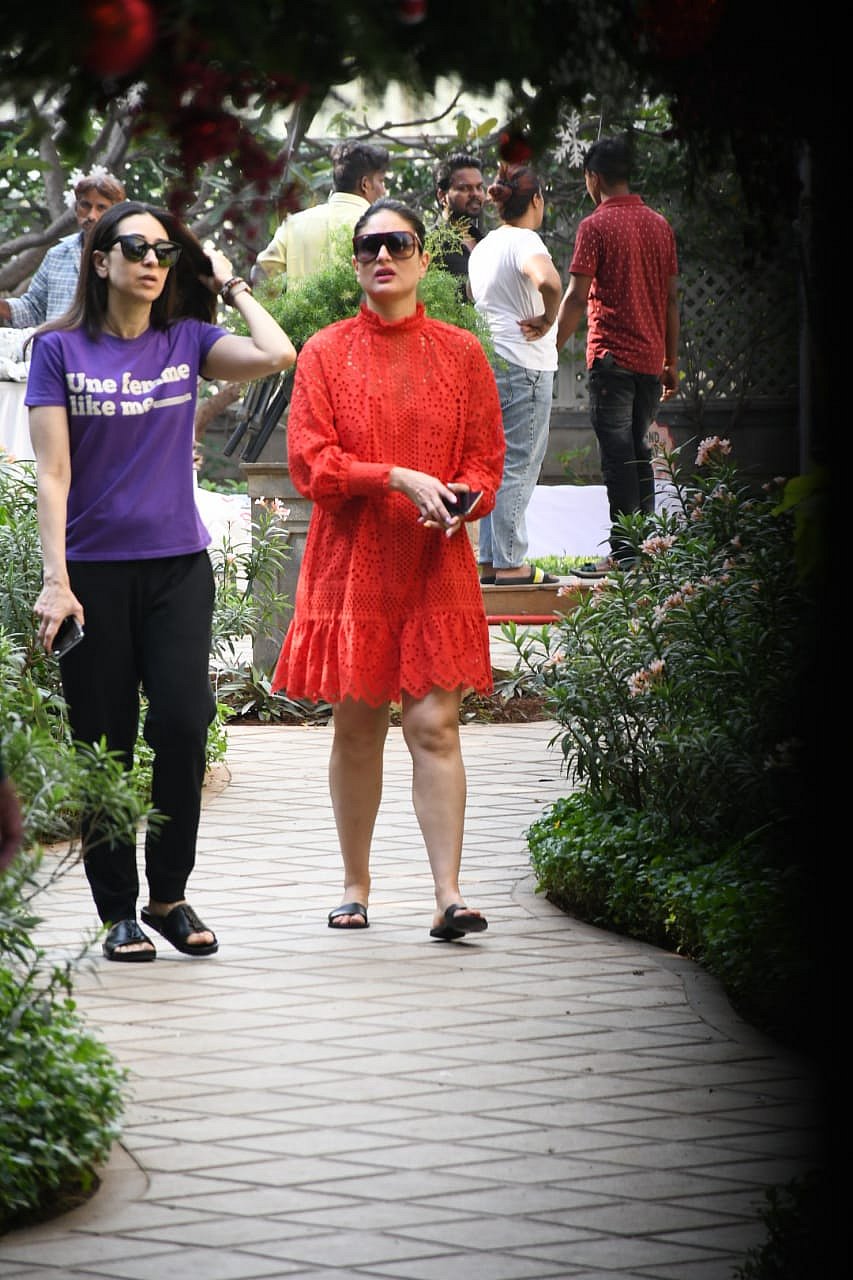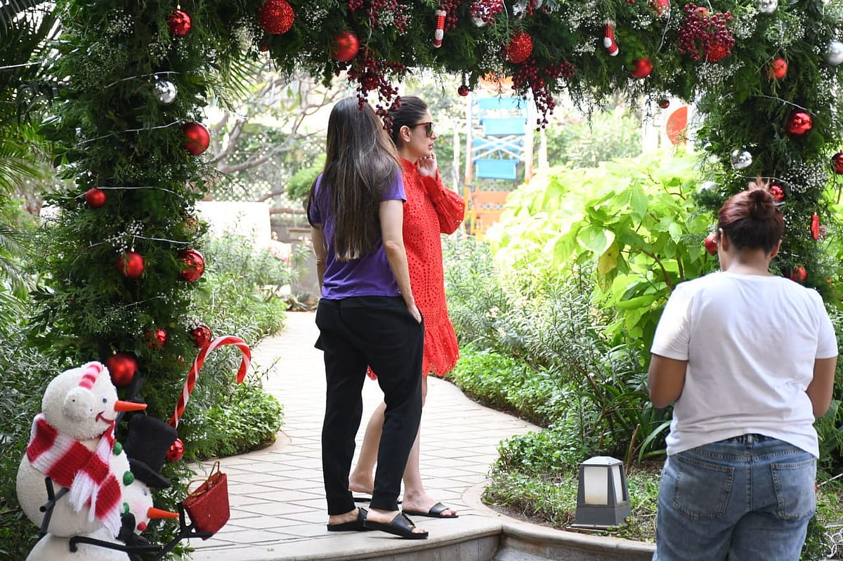 Kareena and her sister Karisma Kapoor were spotted at Bandra to check on the preparation for Taimu’s Christmas themed birthday party. The former wore a gorgeous red dress that lived up to the holiday season, meanwhile Lolo went for casual violet top with black bottoms.