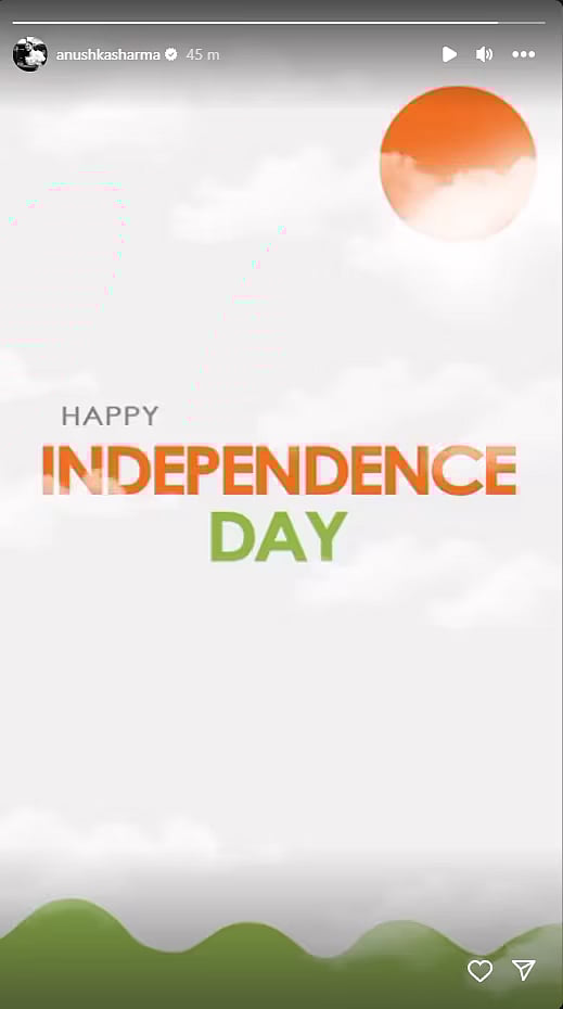 Anushka Sharma took to her social media to share a note reading "Happy Independence Day".