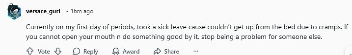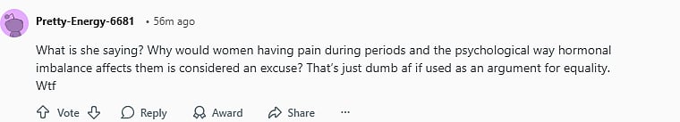 A third comment read, "What the actual fuck. Just because you have energy during your period doesn’t mean everyone does. What a pick-me."