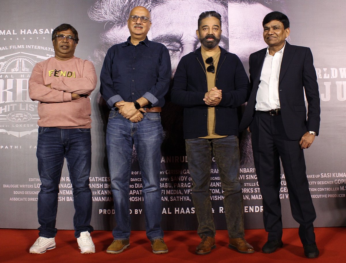 The press conference of Kamal Haasan’s upcoming film Vikram Hitlist was held in Mumbai on May 28. Kamal and Pen Audio’s head honcho Dr. Jayantilal Gada were in attendance. Raaj Kamal Films International’s Vikram Hitlist is helmed by Lokesh Kanagaraj. It also stars Vijay Sethupathi and Fahadh Faasil. It will release on June 3. Kamal answered numerous media queries.