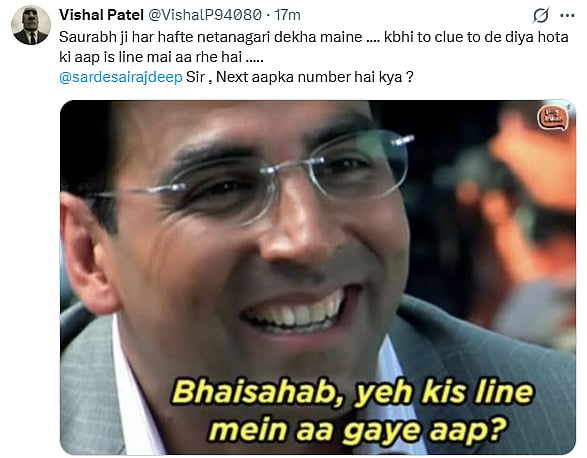 Netizens have hilariously reacted to Saurabh Dwivedi's acting debut. A netizen tweeted, "Saurabh ji har hafte netanagari dekha maine .... kbhi to clue to de diya hota ki aap is line mai aa rhe hai ..... @sardesairajdeep Sir , Next aapka number hai kya? (sic)."