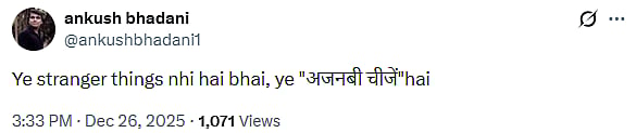 Netizens have hilariously reacted to the video. A netizen tweeted, "Arey bhaiya galt download kar liya (sic)." Another X user wrote, "Ye stranger things nhi hai bhai, ye "अजनबी चीजें"hai (sic)."