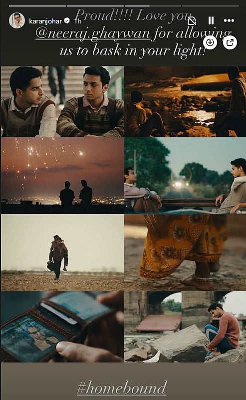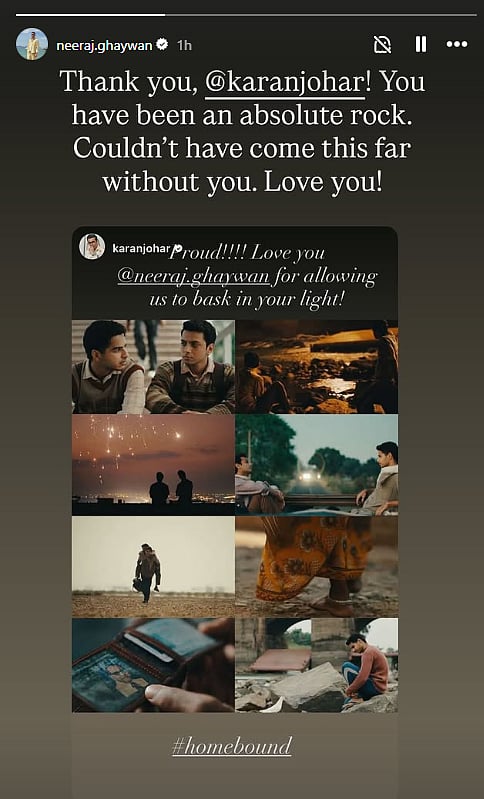 Soon after the nominations were revealed, producer Karan Johar took to his Instagram story to share his reaction. Posting several stills from Homebound, he expressed his admiration for the film and its director Neeraj Ghaywan. “Proud!!! Love you Neeraj Ghaywan for allowing us to bask in your light,” he wrote, signalling his continued support despite the film missing out on an Oscar nod.