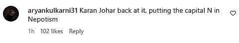 A netizen commented on the post, "Karan Johar back at it, putting the capital N in Nepotism." Another netizen posted a sarcastic comment, "Love to see a kid with no nepotism background." One more Instagram user wrote, "NEW DAY, NEW NEPO BABY LAUNCHED." Check out the comments below...